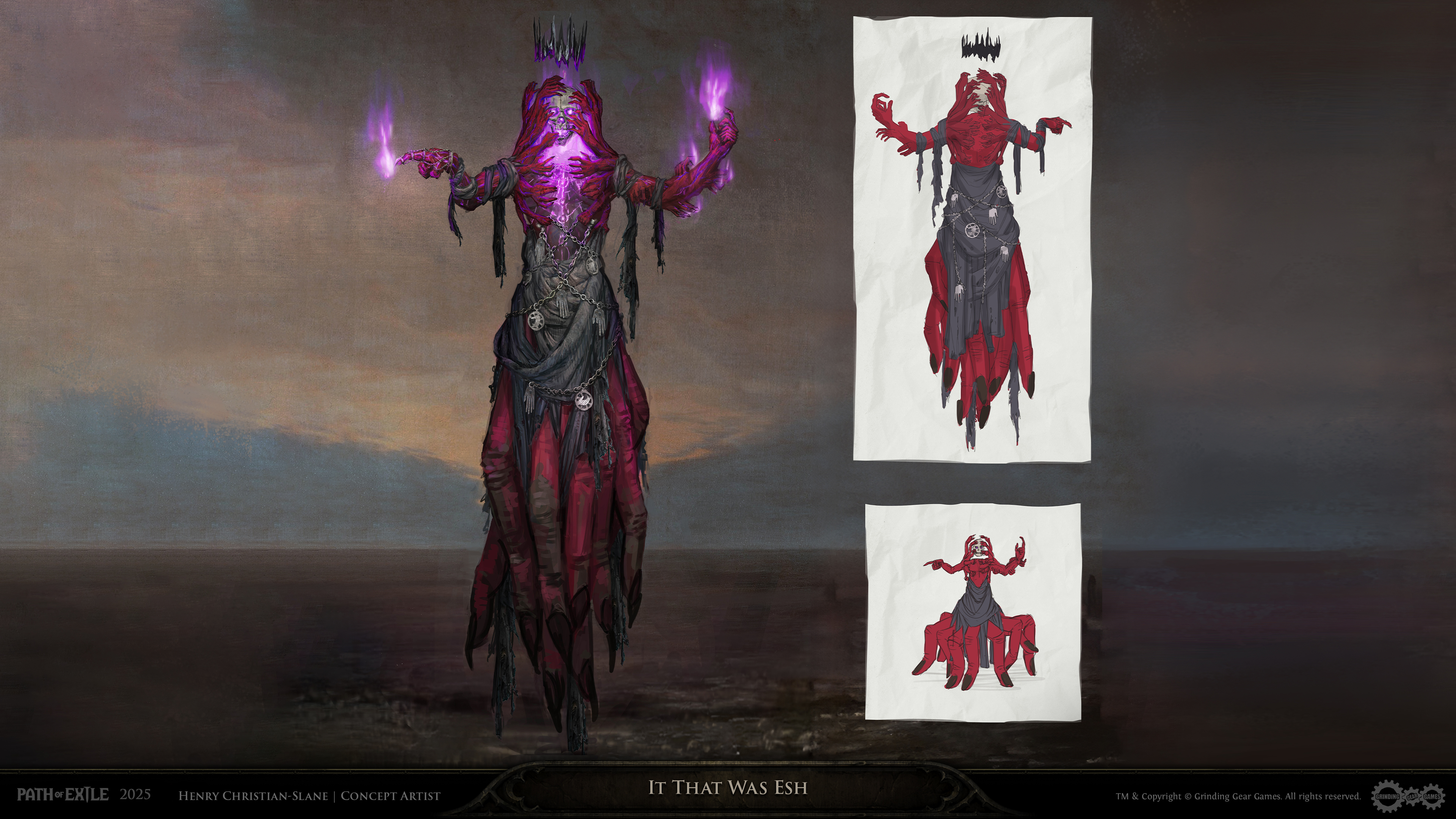 In this post, we’re sharing some concept art from the Path of Exile: Keepers of the Flame League and Kirac’s Vault Pass, which includes an exclusive Armour Set themed around the eldritch entity of the Atlas - the Maven. Check them out below!